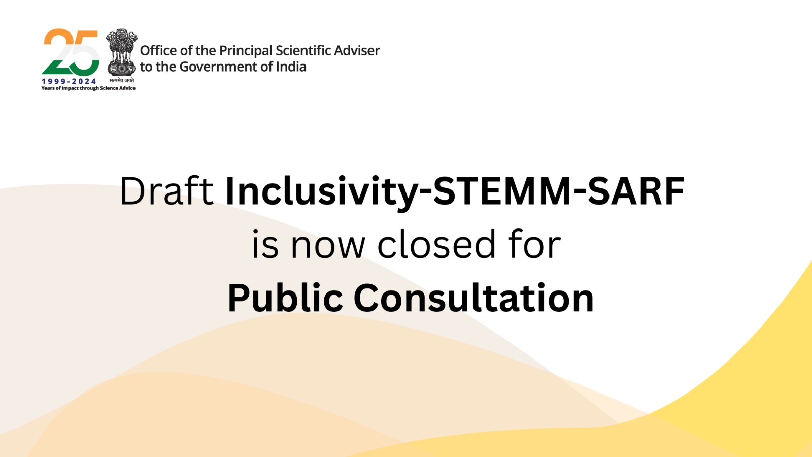The Office of the Principal Scientific Adviser to the Government of India invited you to share your insights on the draft Inclusivity-STEMM-SARF. Your feedback was invaluable in shaping a more inclusive scientific ecosystem.