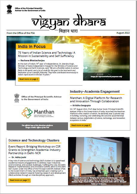 The Office of the Principal Scientific Adviser (OPSA) to the Government of India has been producing Vigyan Dhara, a multi-disciplinary thematic bimonthly newsletter series since 2022. The newsletter is now renewed in a bimonthly multi-disciplinary magazine format beginning with Vigyan Dhara (June 2025 issue) that was curated to commemorate 25 years of the Office.