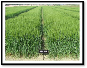 KRL 213 is a semi-dwarf, salt-tolerant wheat variety developed by ICAR for saline (ECe 6.0 dS/m) and alkaline (pH up to 9.2) soils. With amber-colored grain, 11% protein content, and strong resistance to major wheat diseases, it yields 3.3 t/ha under salt stress and up to 6 t/ha under normal soils, outperforming traditional checks.