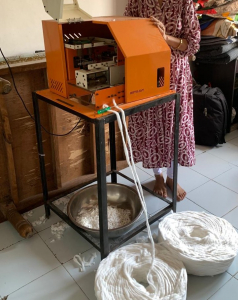 Fully Automatic Cotton Wick Making Machine, developed by the National Innovation Foundation -India, automates the production of round cotton wicks, boosting output from 8–10 manually made wicks per minute to 40–55 per minute. It ensures high-quality wicks, increases income potential up to ₹1,000/day, and requires minimal supervision.